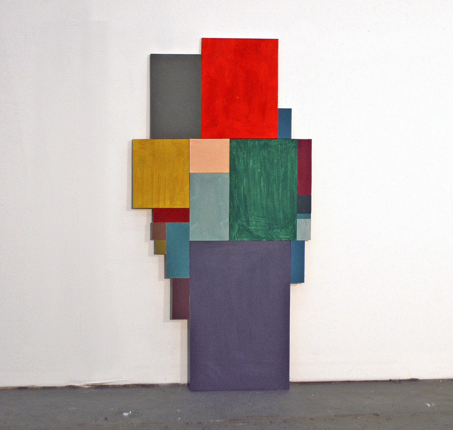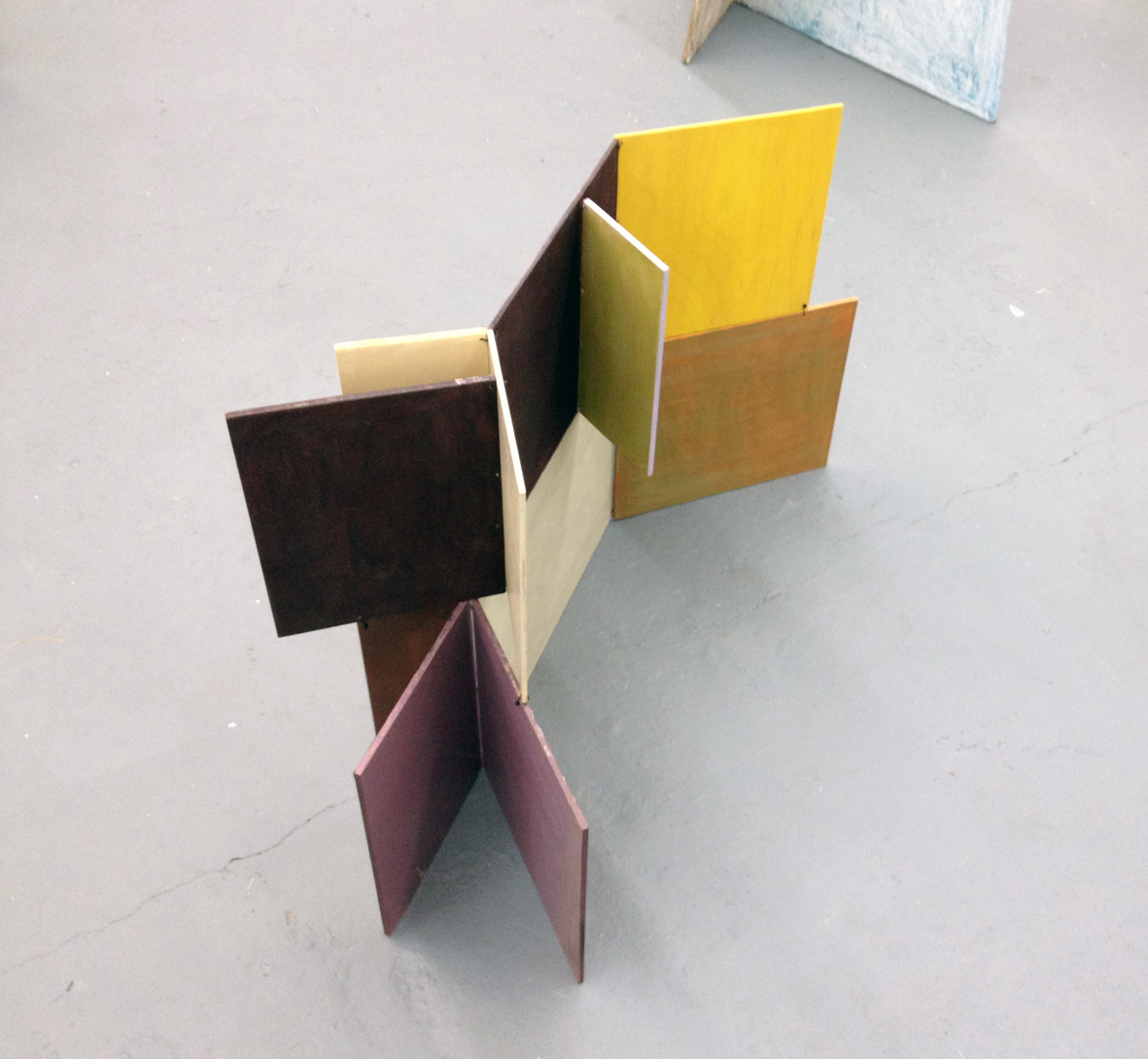 arbeiten 2011, wood, acrylic, installation view: passerelle, Brest 2011, ca. 350 x 450cm