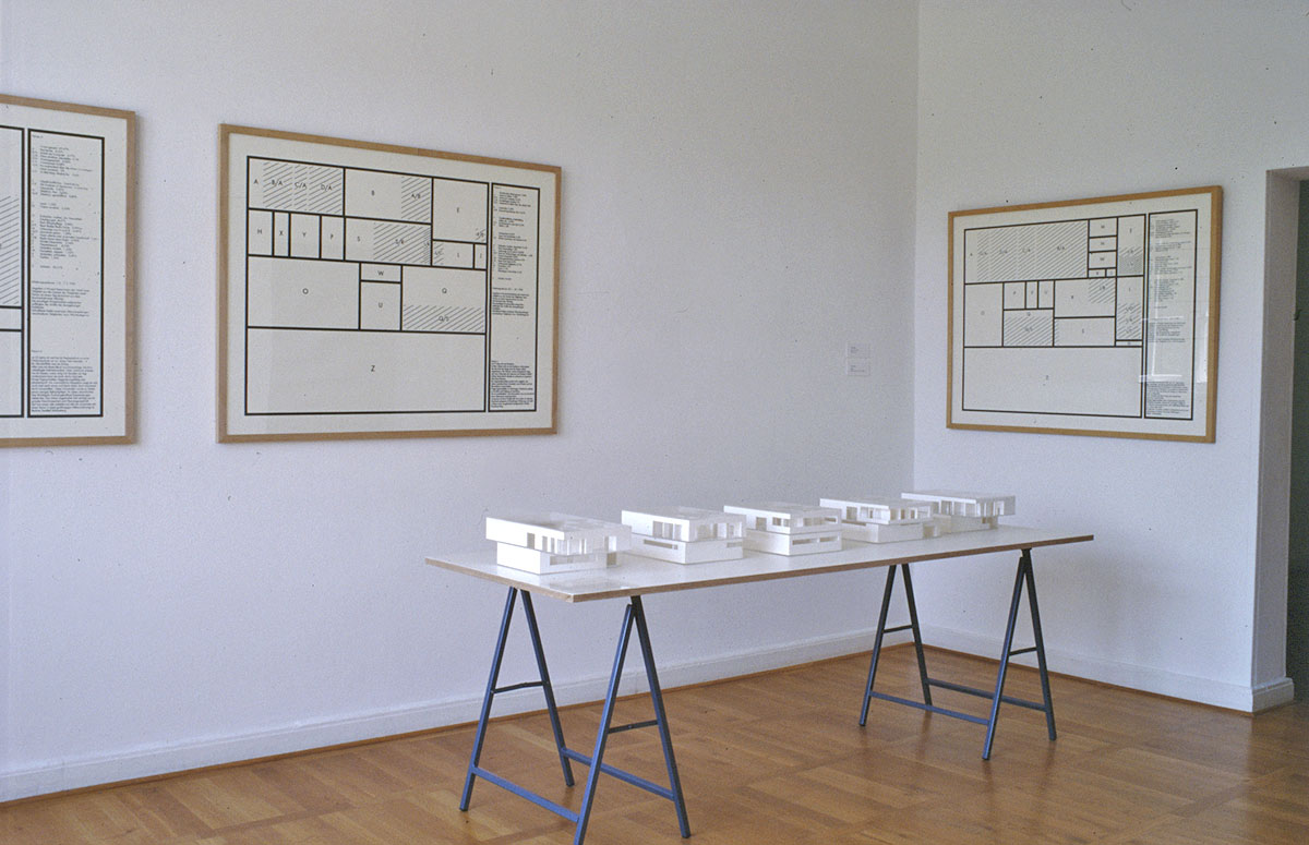 Jürgen K., Dany P., Ulrike K., Reinhard S. und Angela L. wurden gebeten, über einen Zeitraum von sieben Tagen Protokoll darüber zu führen, wie sie Ihre Zeit verbringen, was sie tun und wie lange sie es tun. Diese Informationen wurden in räumliche Dimensionen übertragen und in Bungalow-ähnlichen Modellen zusammengefasst.