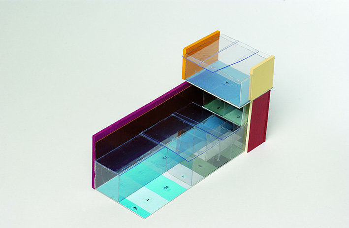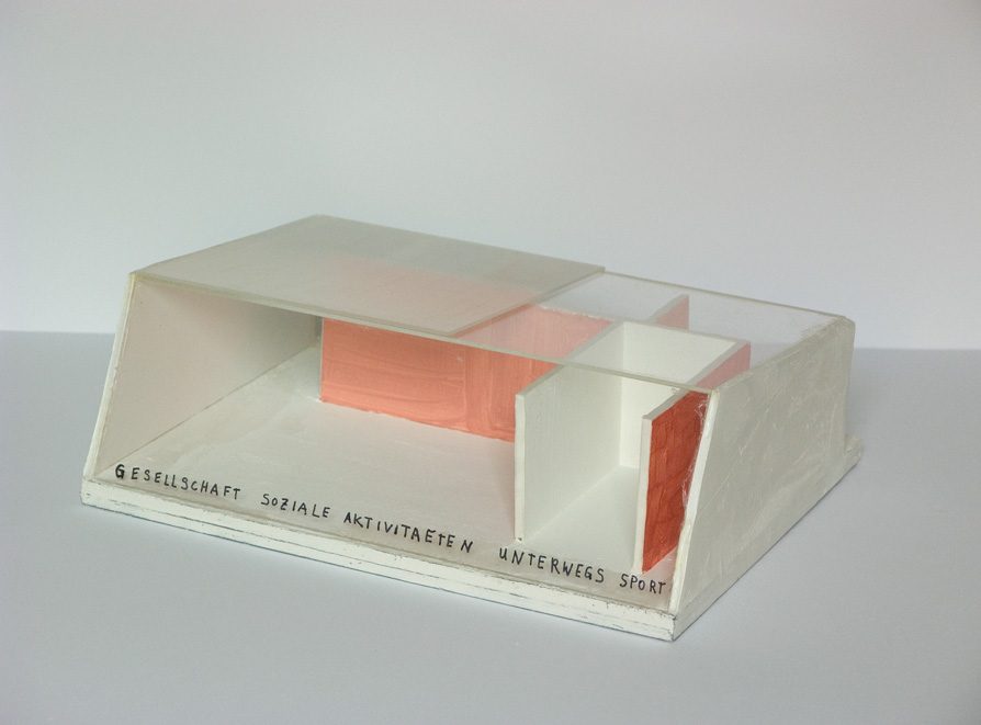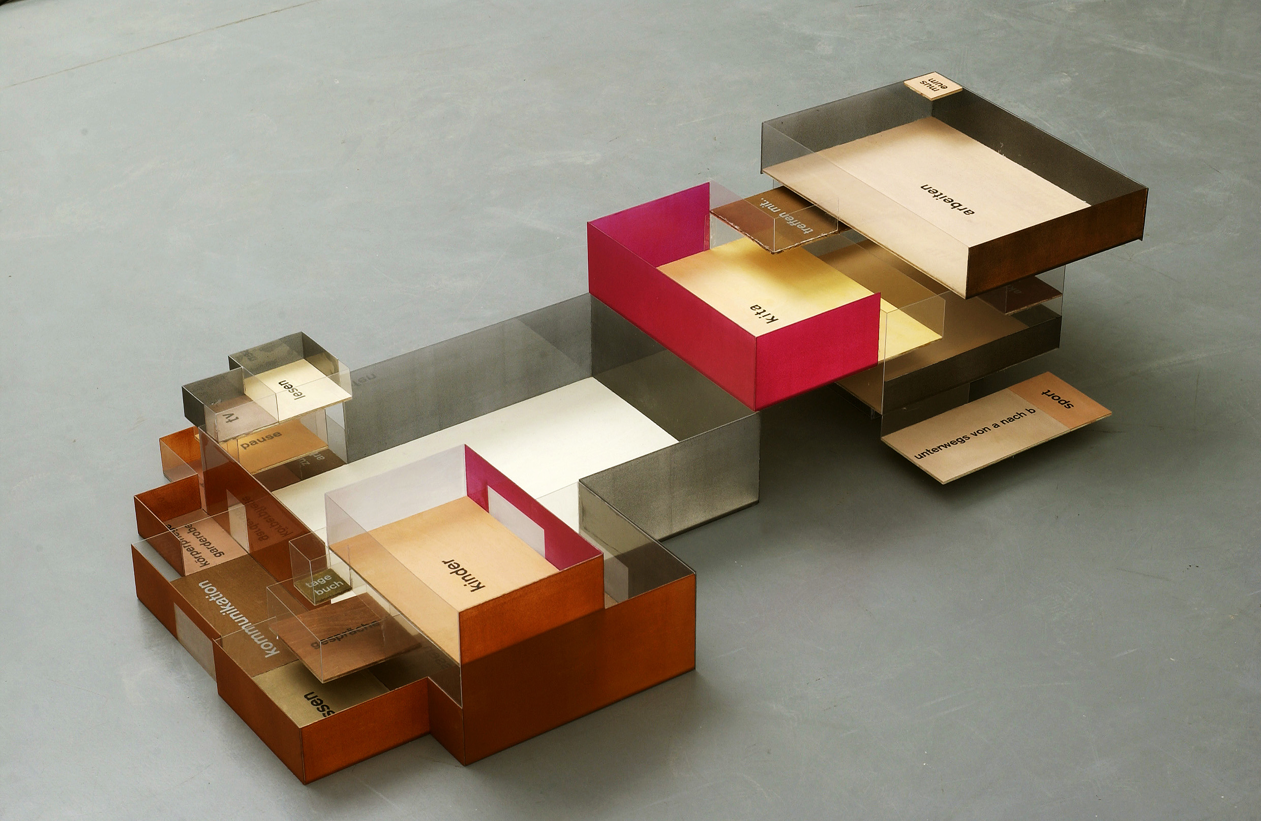 Haus London/ 250 qm für Hannah, Micha, Leon und Bruno, 2002, acrylic/plexiglass and wood, 21 x 110 x 63 cm